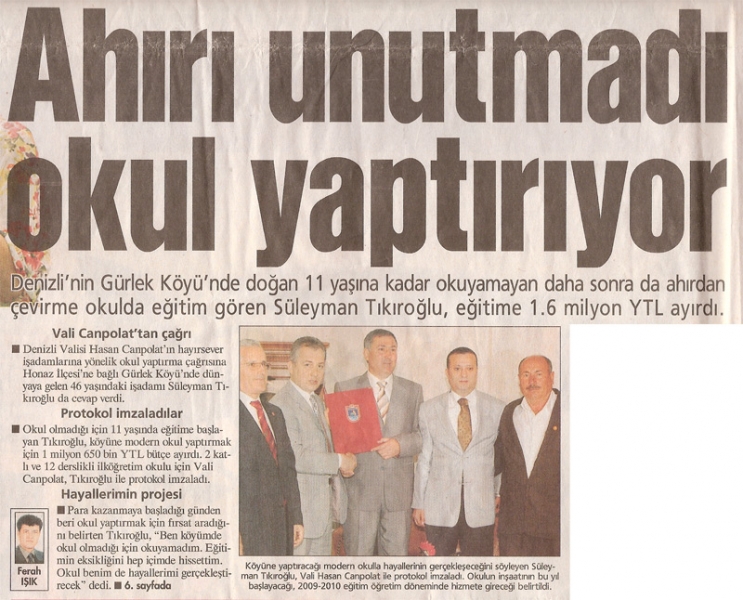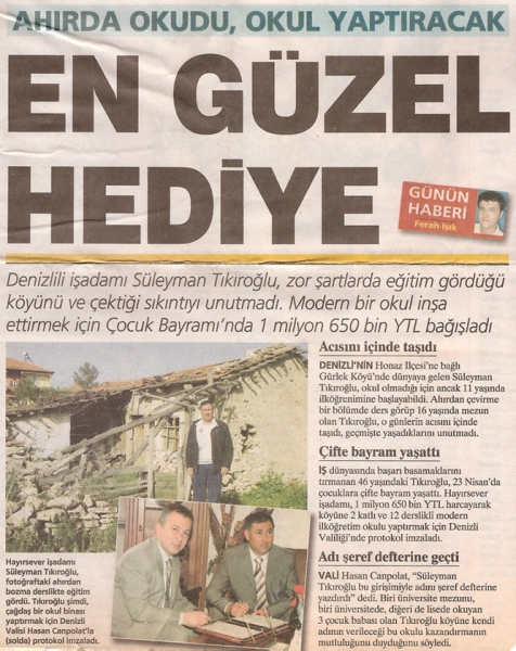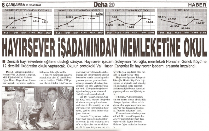 A school for his hometown from a philanthropic businessman: Deha20 – 23.04.2008